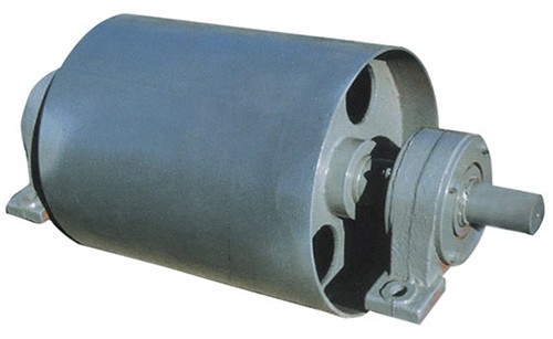 传动滚筒是输送机传递动力的部件。其驱动带式输送机的方式有单滚筒、双滚筒及多滚筒之分。单滚筒多用于功率不太大的输送机上,如煤矿地面运输及选煤厂等处。井下带式输送机一般均采用双滚筒,以使输送机结构紧凑。传动滚筒表面有裸露光钢面,人字形和菱形花纹橡胶覆面。小功率、小带宽及环境干燥时可采用裸露光钢面。人字形花纹胶面摩擦系数大,防滑性和排水性好,但有方向性。菱形胶面用于双向运行的输送机。